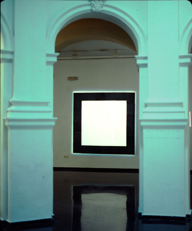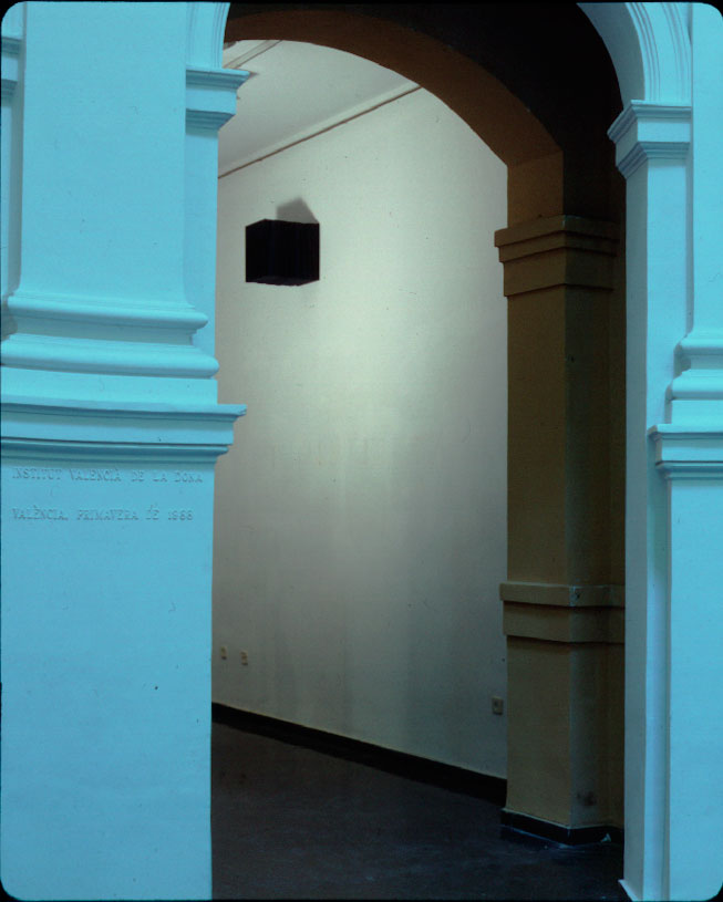 La idea de una pintura «arquitectónica» es sugerida por la forma de montaje y emplazamiento de las piezas, que se disponen en la pared, sobre el suelo o se suspenden en lo alto de un ángulo de la estancia, como cuerpos movibles y mudables. Son, pues, figuras cambiantes, que «habitan» en el esplendor de la penumbra y el vacío de la sala, a la que el espectador se encuentra privado de acceso por las vallas de tubo de acero que impiden su entrada, de tal manera que la visión de su contenido sólo es posible desde el exterior, desde la antesala.[2]